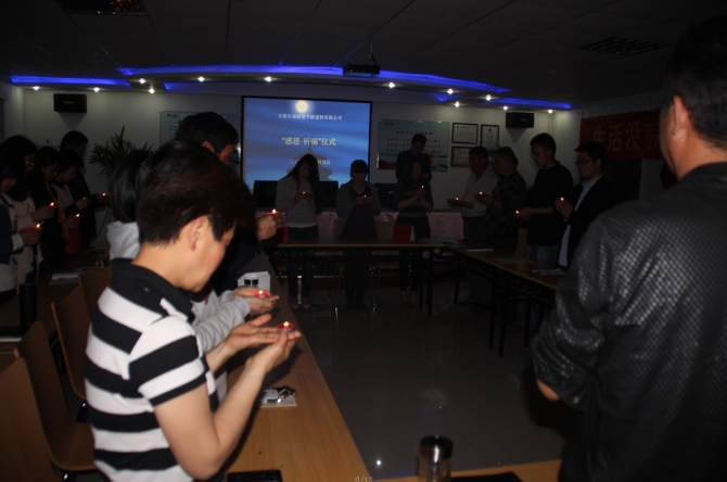 會議結(jié)束以后,為見證公司持續(xù)前進(jìn)的動力和源泉——東強精神,為見證我們?yōu)閴粝攵鴳?zhàn),為未來趨勢而戰(zhàn),為祝福mh370飛機上的同胞及離我們而去的先人們,駕鶴長行,一路走好,為祝福公司各位同仁及家人們,闔家幸福,夢想成真,為祝福發(fā)展中的東強公司, 向上向好,卓越輝煌,時值清明,公司特別舉辦了“感恩、祈福”儀式。