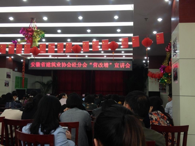 安徽省建筑業(yè)在2016年05月01日起營(yíng)業(yè)稅改為增值稅,安徽省建筑業(yè)協(xié)會(huì)砼分會(huì)舉辦營(yíng)改增宣講會(huì)。我公司安排財(cái)務(wù)及相關(guān)管理人員參加學(xué)習(xí)。