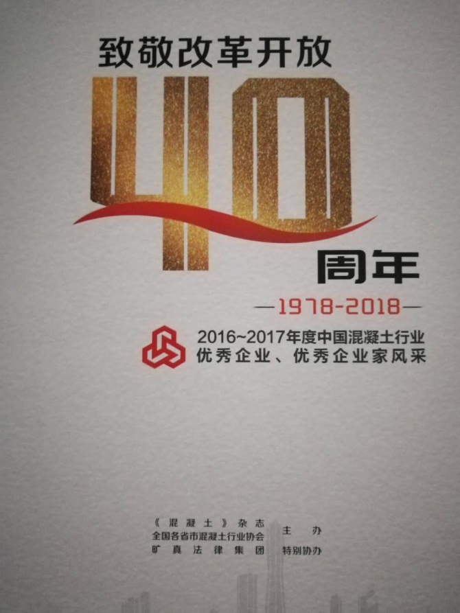 2018年10月21日至24日我公司領導赴浙江參與《2018年中國混凝土年會暨新時代混凝土行業(yè)綠色高性能發(fā)展論壇大會》,并在會上被評為2016——2017年度中國混凝土行業(yè)優(yōu)秀企業(yè)。公司積極參與行業(yè)大會,把握混凝土行業(yè)新技術、新發(fā)展、新導向,與時俱進,不斷創(chuàng)新。
